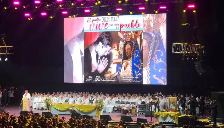 Jorge García Cuerva, arzobispo de Buenos Aires, fue uno de los principales oradores en el homenaje que se realizó este domingo 12 de mayo en el Luna Park al padre Carlos Mugica, asesinado en la puerta de la parroquia San Francisco Solano del barrio Mataderos el 11 de mayo de 1974.