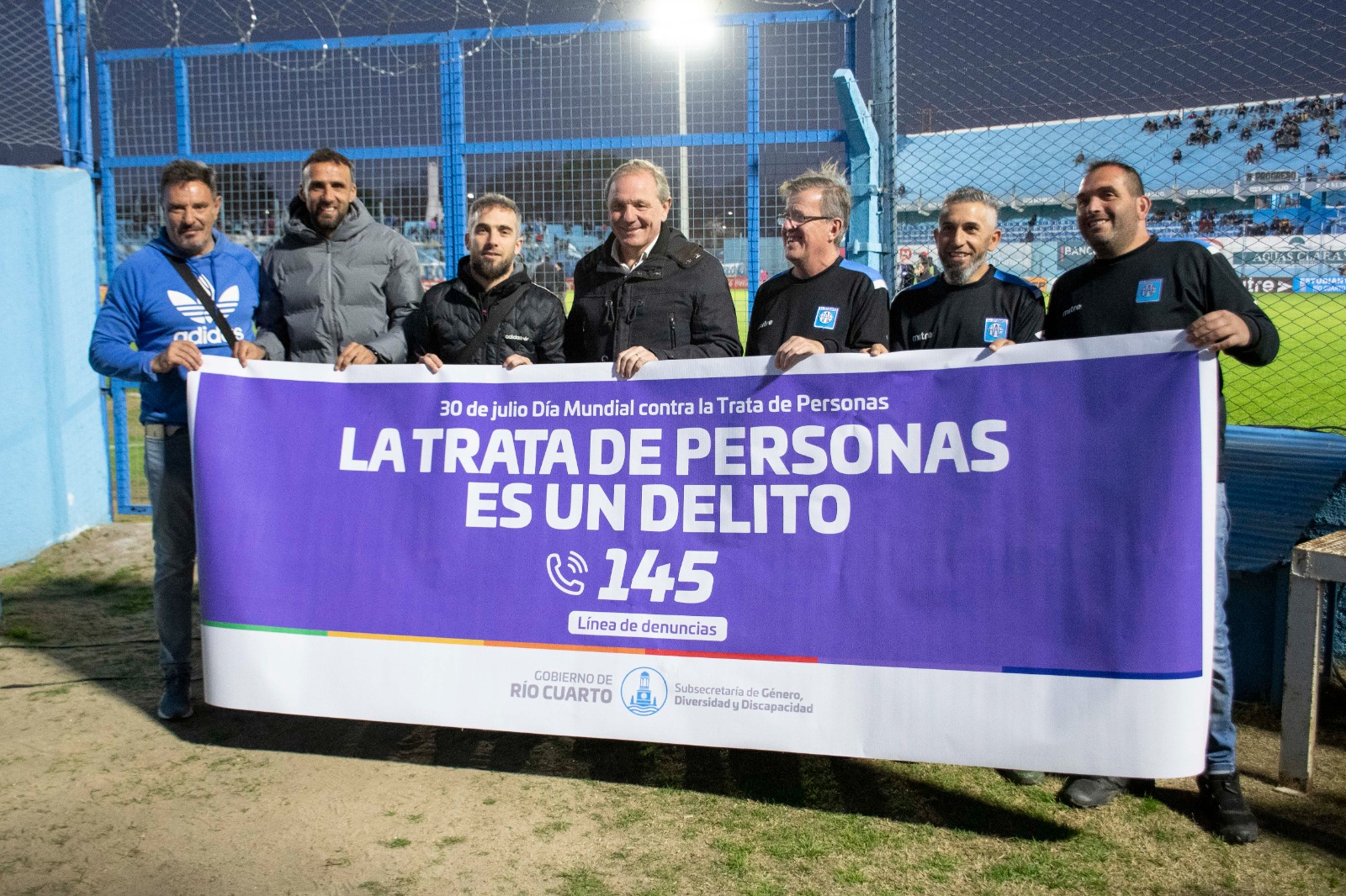 Como cierre de una semana de actividades vinculadas al Día Internacional contra la Trata de Personas, el intendente Guillermo de Rivas se hizo presente anoche en el partido disputado por Estudiantes y Aldosivi donde la subsecretaría de Género, Diversidad y Discapacidad trabajó en la concientización y prevención de este grave delito.