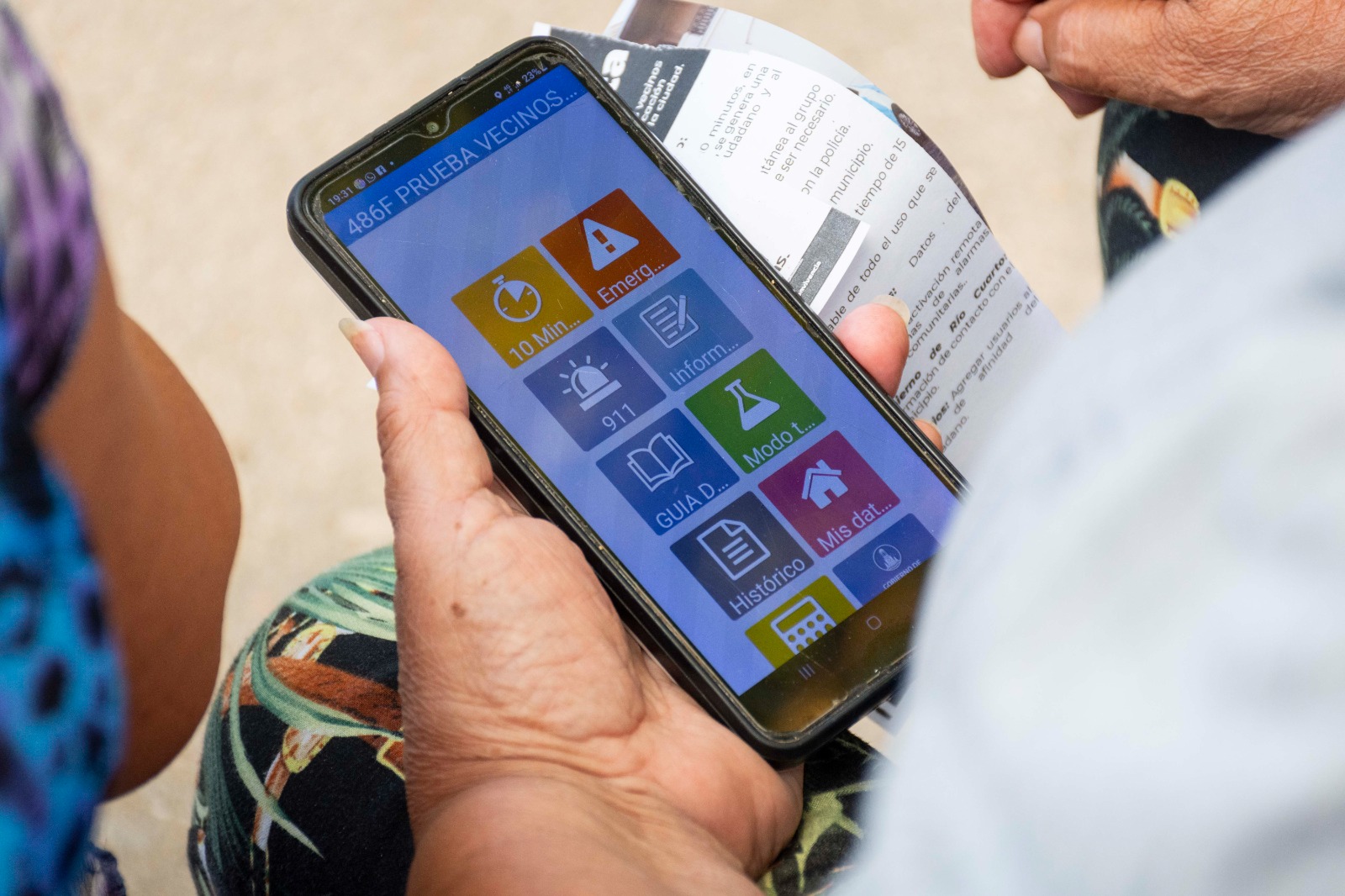 “Nosotros vamos a los barrios antes una convocatoria que surge de un vecino referente del sector. Allí planteamos cómo es el programa junto al equipo proveedor de nuestro sistema de alarmas. En la ocasión, dejamos instalada una aplicación de prueba para que el vecino pueda familiarizarse con el dispositivo. A partir de ese momento, se tienen que reunir 40 vecinos que quieran formar parte de este grupo cerrado de ayuda y protección mutua y luego se hace la gestión para la instalación de la alarma en el barrio”, detalló Medina.