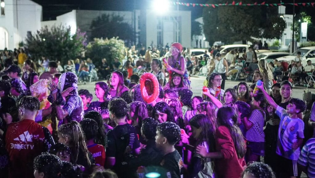 La espuma fue protagonista, los disfraces captaron todas las miradas y los feriantes trabajaron intensamente durante toda la noche, acompañando el espíritu de encuentro y celebración.