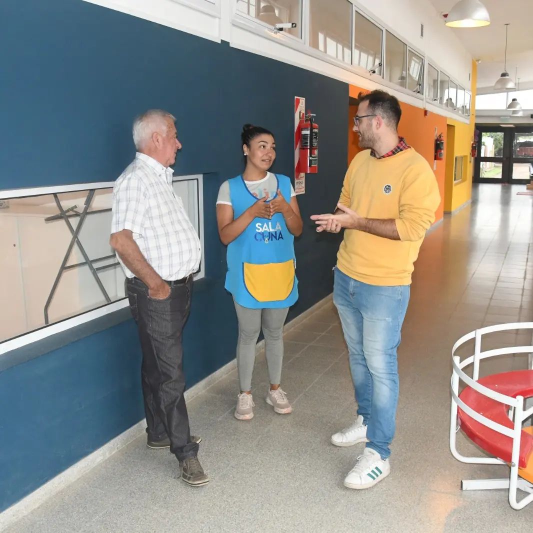 Acompañado por el secretario de Gobierno, Pablo Tosto, estuvieron en el Jardín de Infantes María Elena Walsh (de gestión municipal), y la Sala Cuna Municipal.