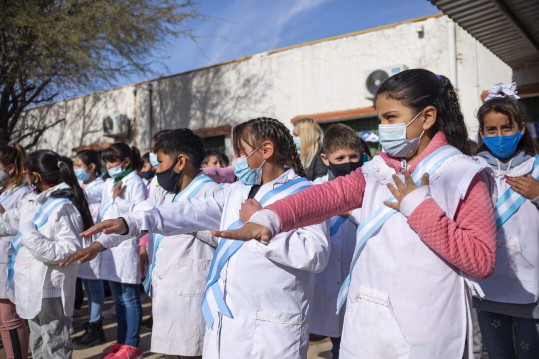 Autoridades educativas de la Provincia y del Municipio acompañaron a los alumnos de cuarto, quinto y sexto grado del Centro Educativo «Bernardino Rivadavia» en el acto de jura y promesa de lealtad a la bandera.