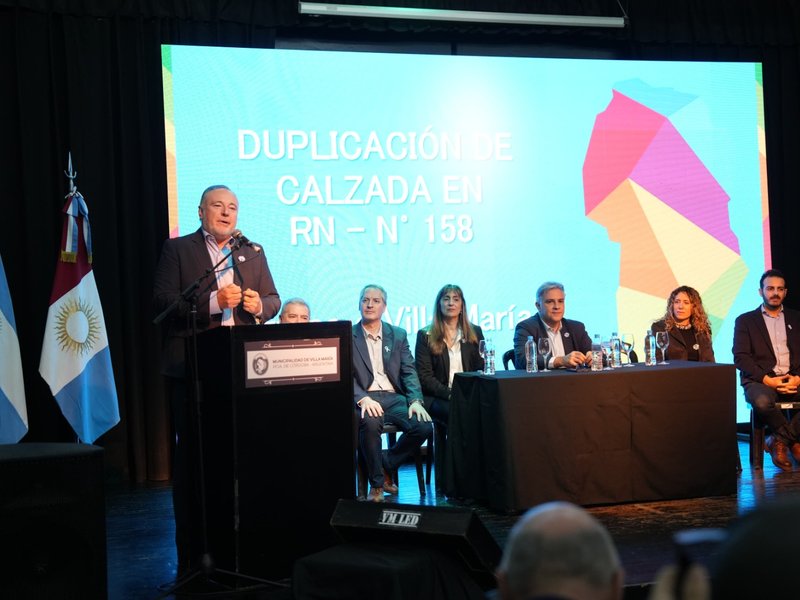 En Villa María, el gobernador anunció el llamado a licitación para la duplicación de calzada de la ruta Nacional N° 158, en el ingreso a la ciudad desde Autopista Nacional 9 y hasta bulevar Argentino. La inversión provincial será de 14.078 millones de pesos.