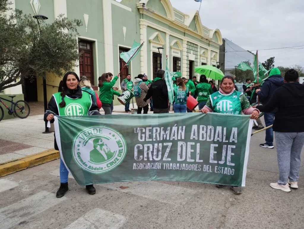 ATE encabezó la protesta esta semana por las calles de la ciudad encabezada por el secretario General del Consejo Directivo Provincial, Federico Giuliani, que fue a Cruz del Eje junto a una comitiva de compañeras y compañeros llegada para expresar la solidaridad del conjunto de nuestro gremio.