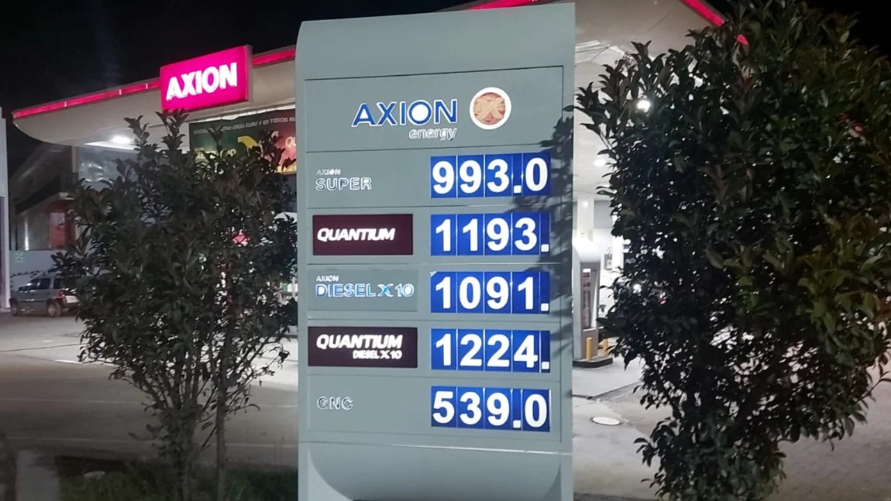 En ese caso, el precio del litro de nafta super cuesta ahora $993, mientras que la Quantium quedó en $1.193. El Diesel de Axion cuesta ahora $1.091 por litro y el Quantium Diesel $1.224.