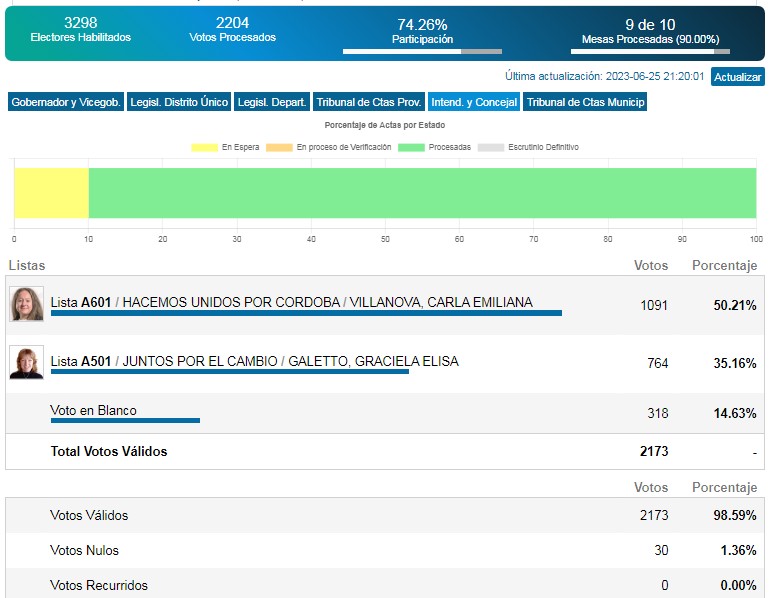La candidata de Unidos por Córdoba alcanzó el 50%, mientras que Graciela Galetto de Juntos por el Cambio cosecho el 35%.