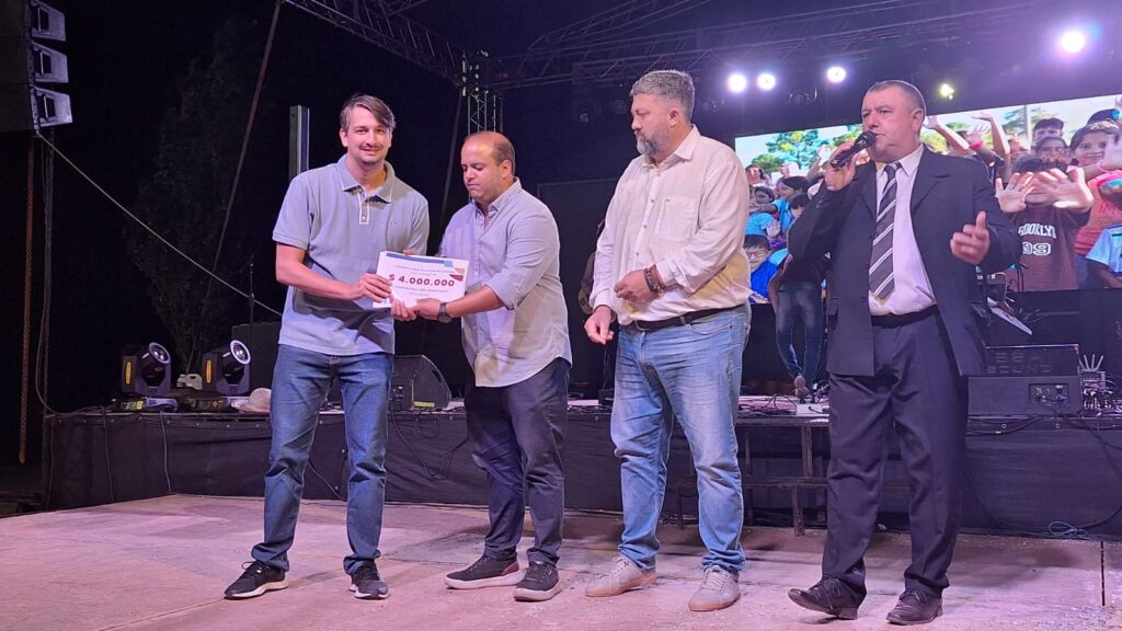 En el marco de los festejos, Nahuel Aruza, representante del Centro Cívico de Río Cuarto, acompañó la celebración e hizo entrega de un aporte económico del Gobierno de la Provincia de Córdoba de 4.000.000 de pesos para la localidad.