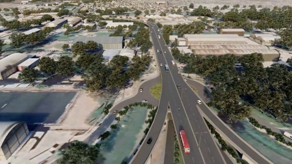 En la parte inferior del altonivel se proyectaron calles que comenzarán a ambos lados de los muros de sostenimiento del viaducto y se desarrollarán a través de una avenida urbana con dos carriles por sentido de circulación y un cantero central de tres metros hasta la intersección con la colectora de Circunvalación.