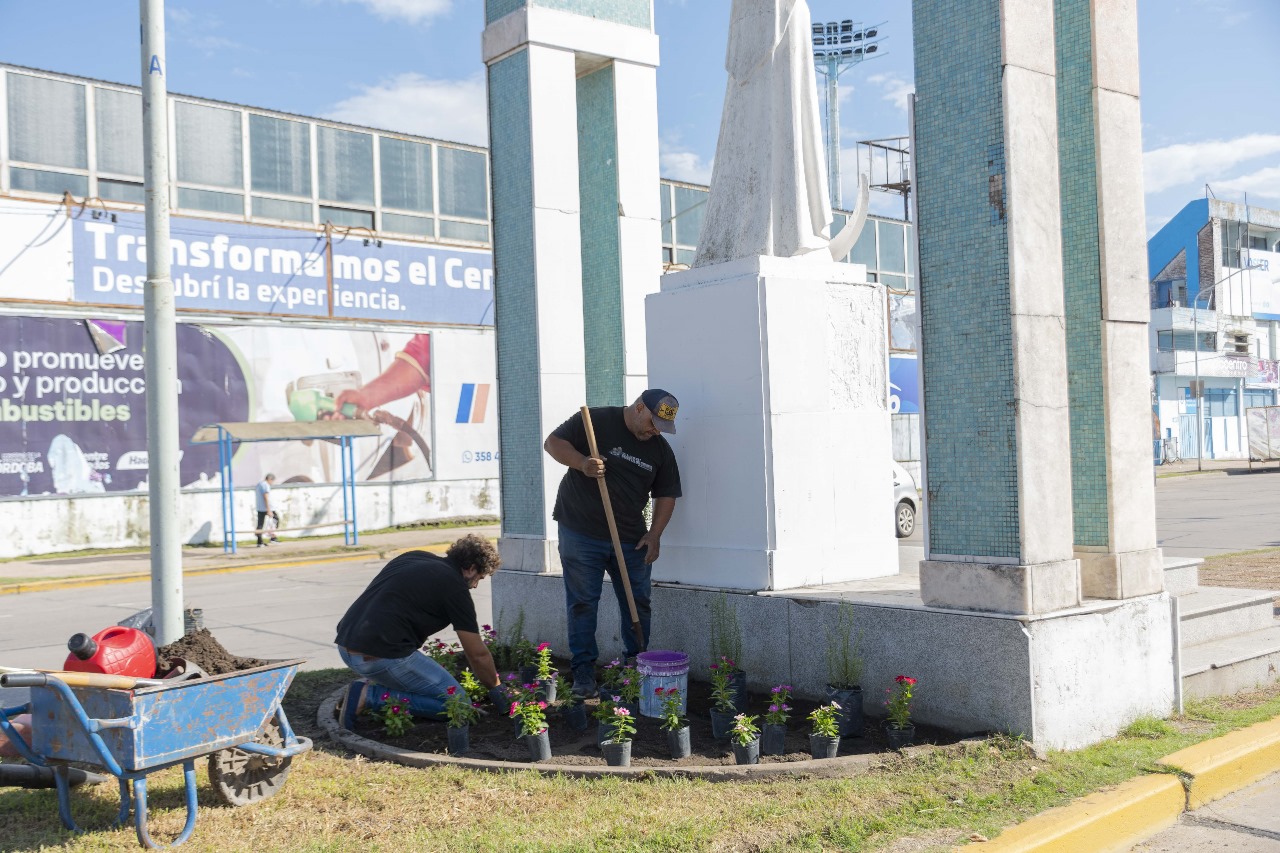 “El clima nos ha acompañado y pudimos concretar lo que habíamos proyectado. El objetivo fue embellecer este lugar tan emblemático de la ciudad, ya que estamos en una fecha muy especial desde lo religioso. Incorporamos plantas para acompañar a la Virgen y a la comunidad de Río Cuarto que pasa por el lugar”, explicó.