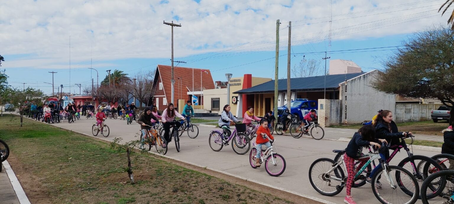 El paseo en bici fue por las calles del pueblo, acompañado por Bomberos que se sumaron a colaborar con la actividad. Mientras que la barrileteada se concretó en el predio Los Troperos, donde el cielo fue decorado por los diferentes y atractivos barriletes de cada buchardense.