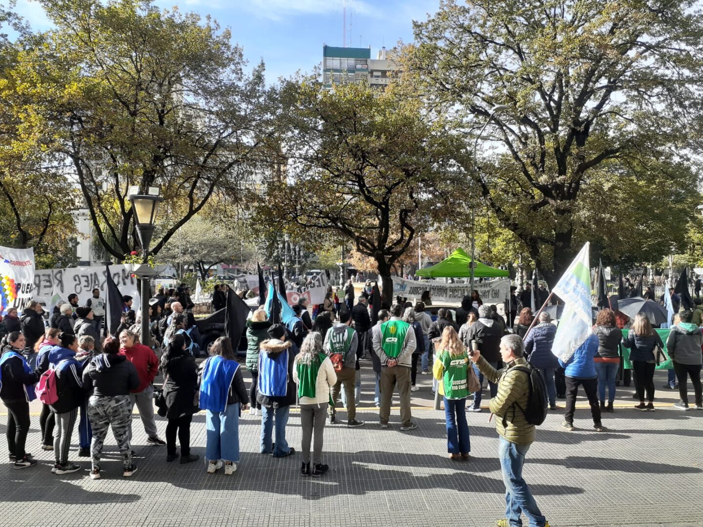 Organizaciones sociales, gremiales, políticas y organismos de Derechos Humanos se concentraron en la plaza central de la ciudad para expresar su rechazo a la represión en Jujuy, la criminalización de la protesta y la reforma constitucional “de espaldas al pueblo”.