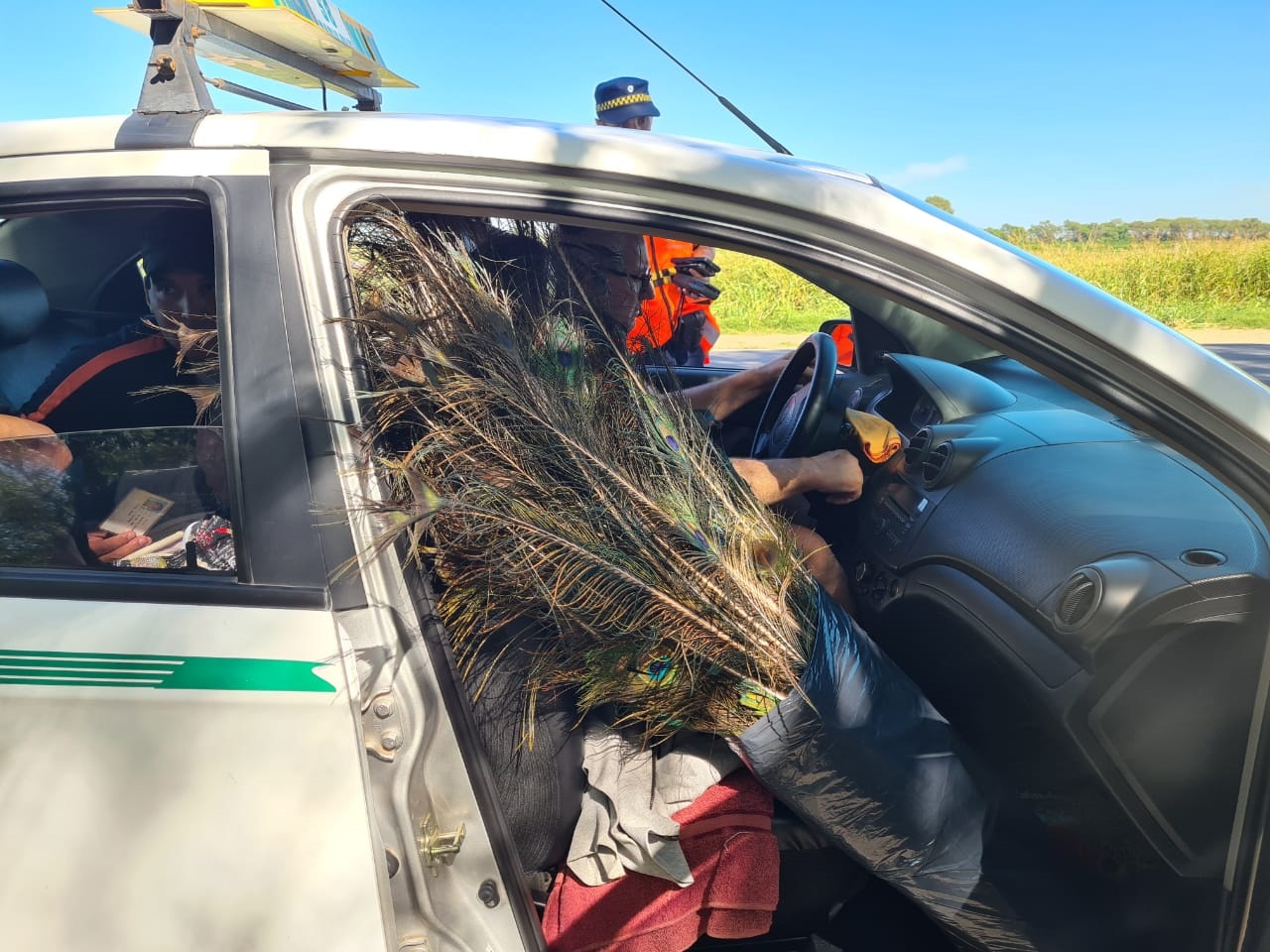 En la oportunidad se decomisaron y posteriormente se desnaturalizaron, de manera preventiva, plumas de pavo real que eran transportadas en un vehículo particular. Adicionalmente se constató que los vehículos que trasladan animales en pie y alimentos posean la documentación respaldatoria.