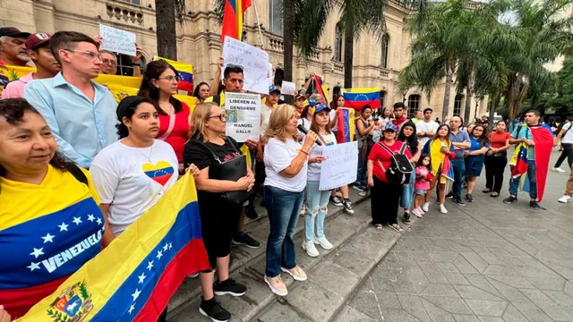 A pocas cuadras, en Plaza España, se desarrolla una movilización encabezada por la comunidad venezolana en Córdoba y sectores opositores al chavismo, quienes consideran la jornada como un “día histórico”.