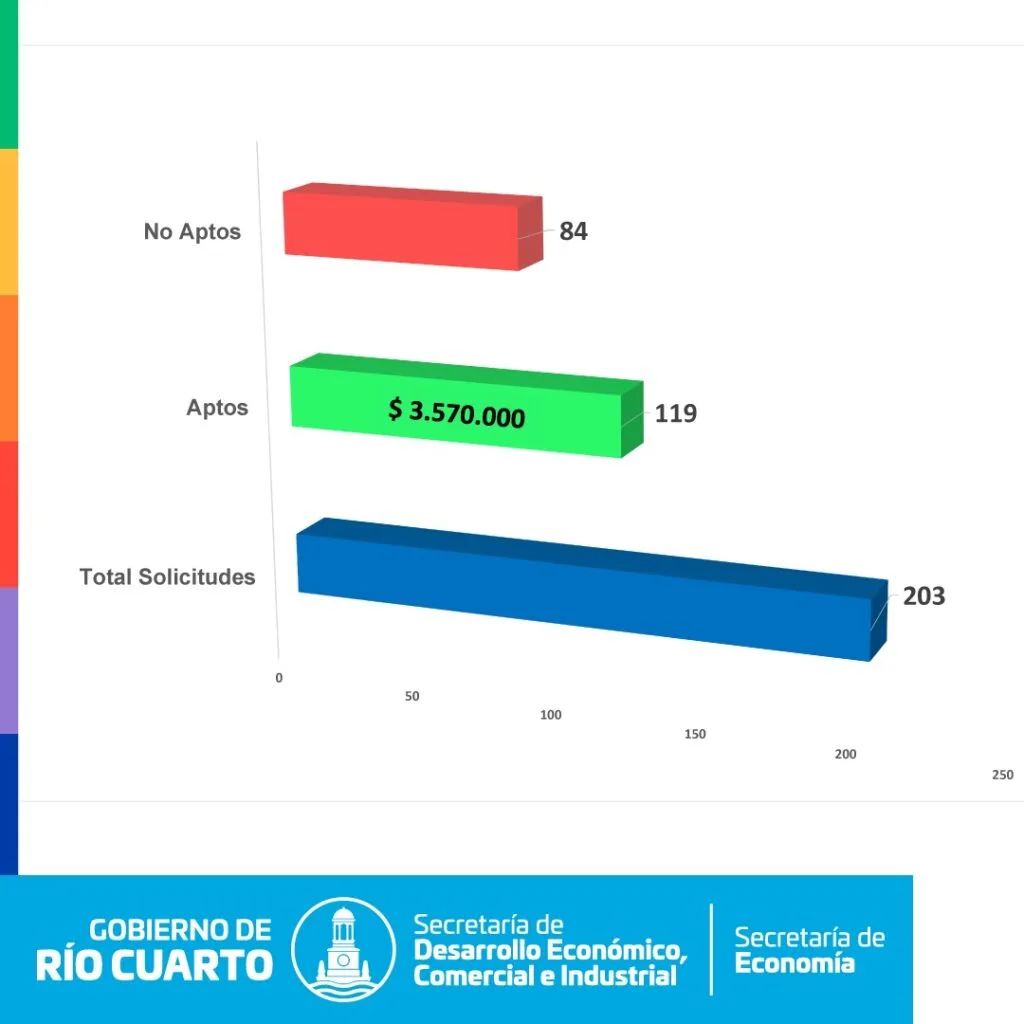 El programa que se ejecutó en conjunto entre la Secretaría de Desarrollo Económico, Comercial e Industrial y la Secretaría de Economía recibió en total 203 solicitudes, de las cuales 119 resultaron beneficiadas por cumplir con los requisitos detallados en la ordenanza N°77/21, sancionada por el Concejo Deliberante de nuestra ciudad.