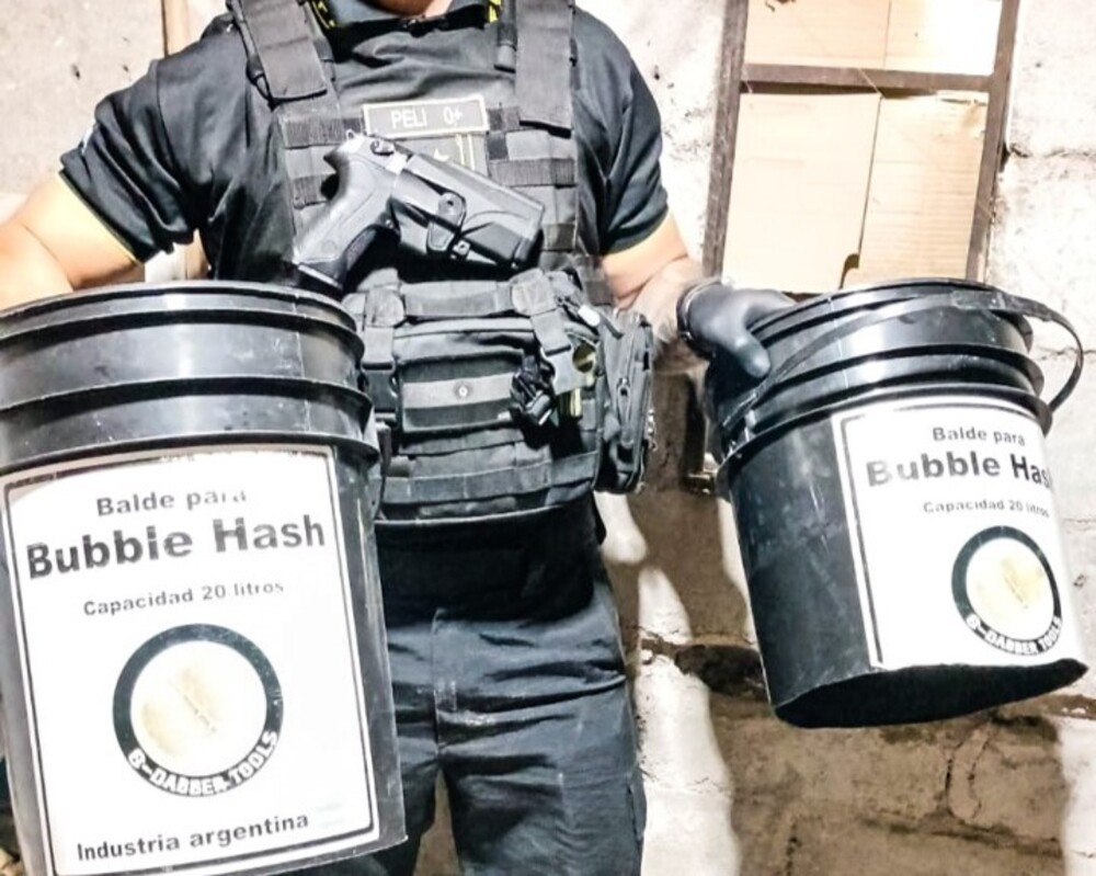 Durante los allanamientos se encontraron plantas de cannabis, dosis de marihuana y cocaína, semillas y ramas de la planta, además de 401.600 pesos en efectivo. En uno de los domicilios los investigadores descubrieron un laboratorio completo: prensa para extractos, termómetros digitales, temporizadores, sistemas de iluminación y refrigeración, bombas de aire y agua, ventiladores, filtros, containers y otros insumos necesarios para producir “bubble hash”.