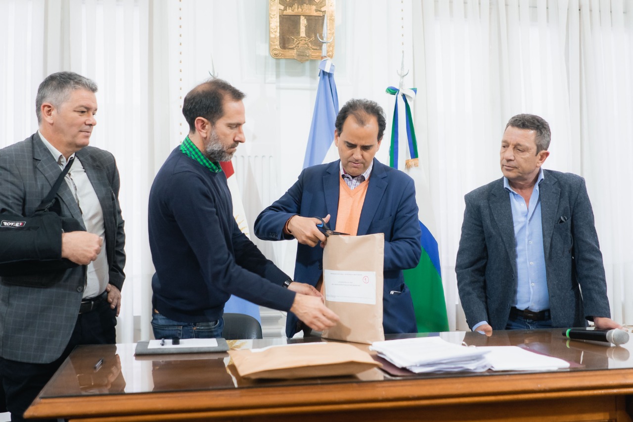 El Intendente Juan Manuel Llamosas junto con el Secretario de Obras Públicas Martin Cantoro encabezaron el acto de apertura de los sobres correspondientes a la licitación de la obra de Doble Vía sobre la calle Reforma Universitaria.