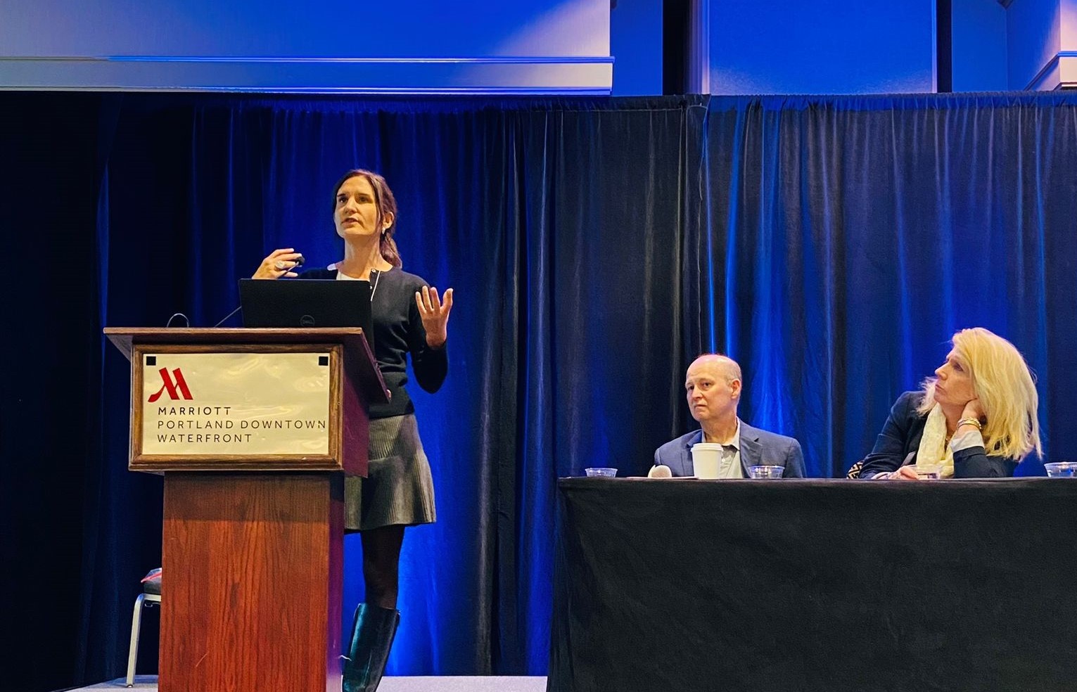 La docente asistió a la Asociación Americana de Lingüística Aplicada (AAAL) en la ciudad de Portland, donde formó parte de un coloquio (invited colloquium) que recibió beca y premio de la Federación Nacional de Asociaciones de Profesores de Idiomas Modernos (National Federation of Modern Language Teacher Associations) y de la revista científica The Modern Language Journal (MLJ).