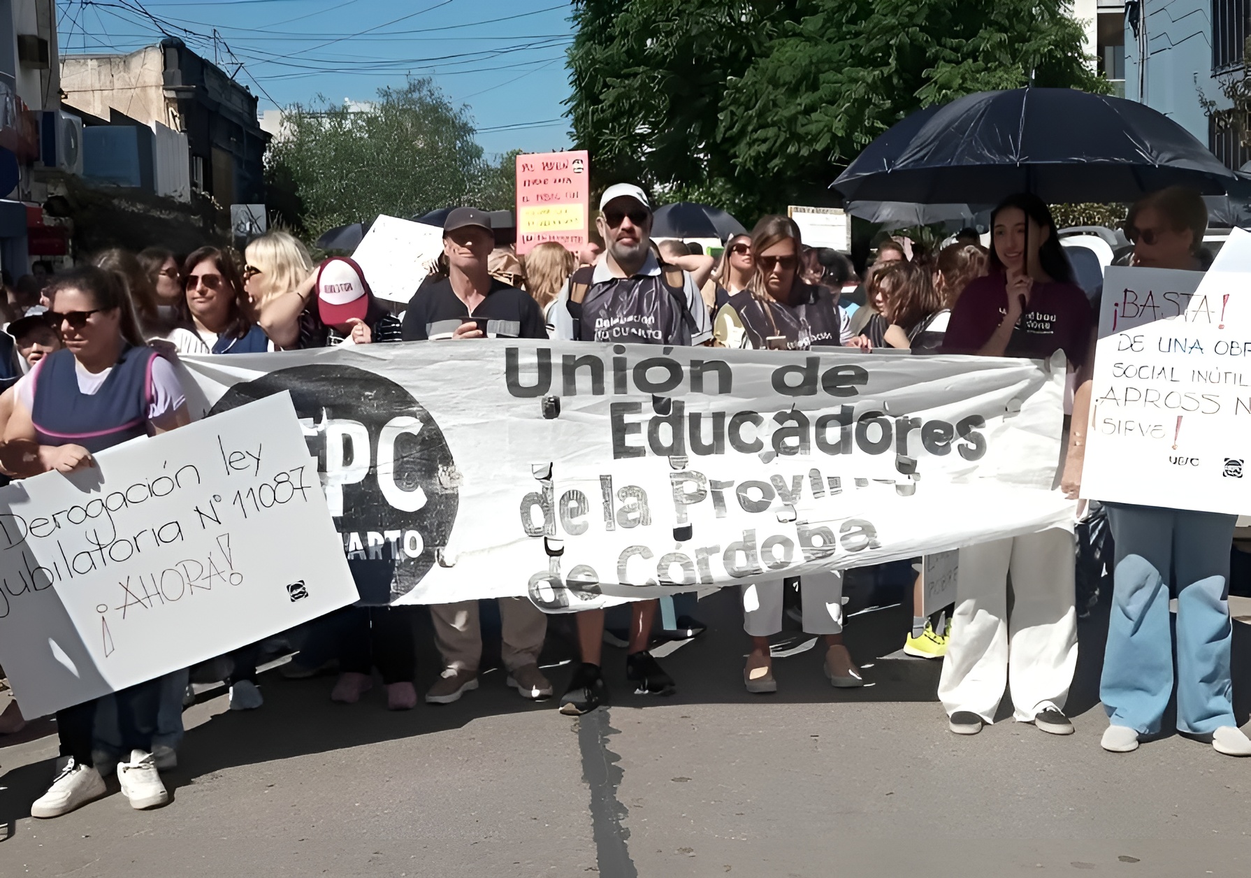 Este jueves al mediodía, docentes nucleados en la Unión de Educadores de la Provincia de Córdoba (UEPC) marcharon por las calles de Río Cuarto para visibilizar el reclamo por mejoras salariales que les permitan sostener condiciones de vida dignas.