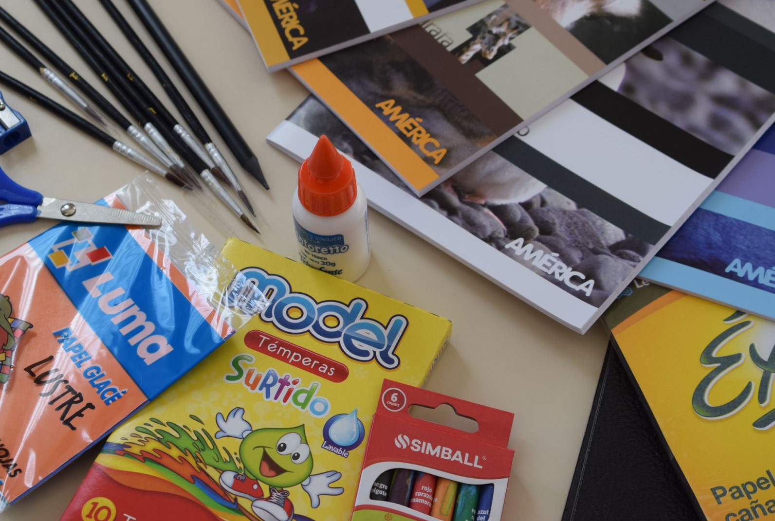 Los kits escolares, adquiridos a través de proveedores locales, están compuestos por todos los elementos necesarios para que los alumnos asistan a clases.