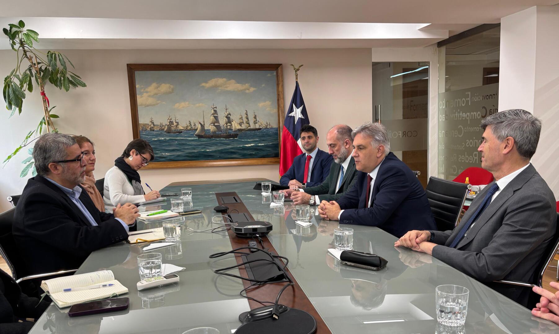 Luego, los funcionarios mantuvieron un encuentro en CORFO CHILE La Corporación de Fomento de la Producción, que trabaja apoyando el emprendimiento, la innovación y la competitividad, fortaleciendo, además, el capital humano y las capacidades tecnológicas.