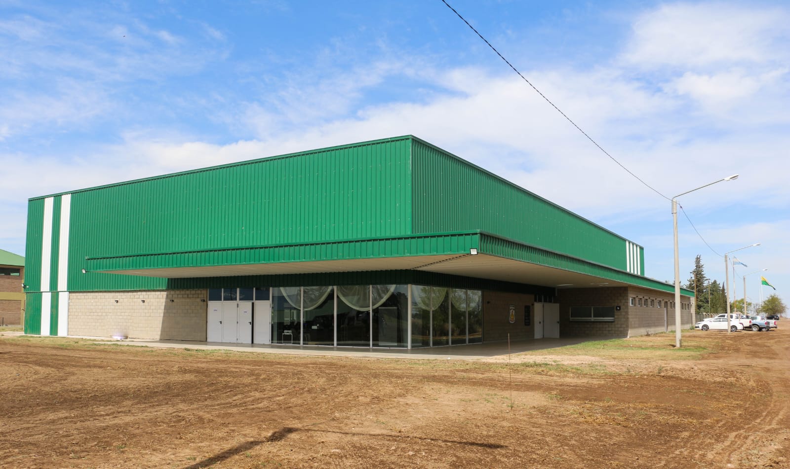 Cuando uno llega a la localidad, desde la ruta ya se ve la construcción que impacta por sus dimensiones. El salón de usos múltiples tiene 2500 metros cuadrados y su estructura está pensada para grandes eventos con escenario, vestuarios, camarines, sanitarios y una amplia cocina con asadores para el servicio gastronómico.