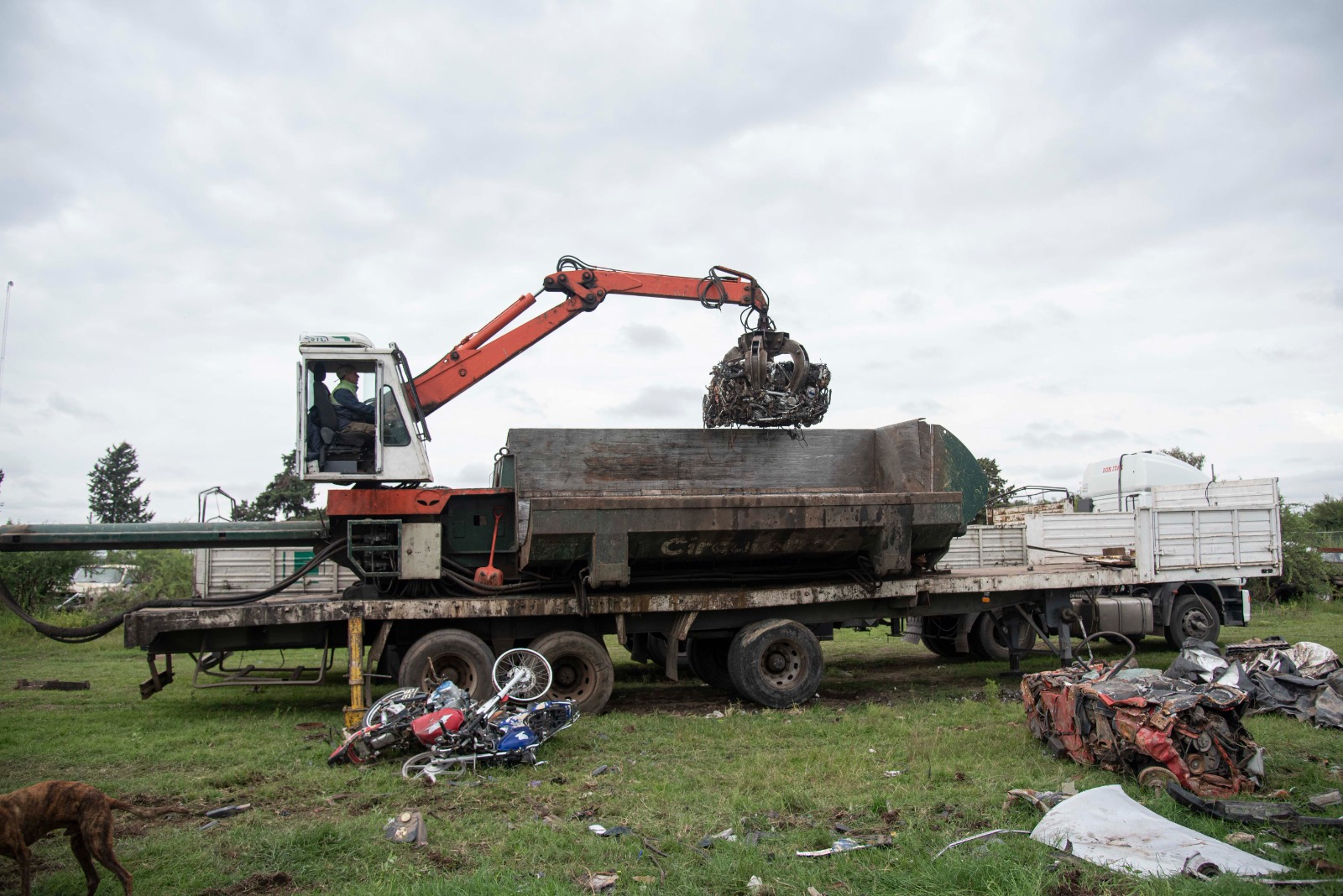 En el caso de las motos, el protocolo implica desarmar los plásticos, separar los líquidos y cortar las gomas. Una vez que la unidad está preparada para ser compactada, se las agrupa de a 10 y se las prensa para su posterior carga y reutilización en una acería.