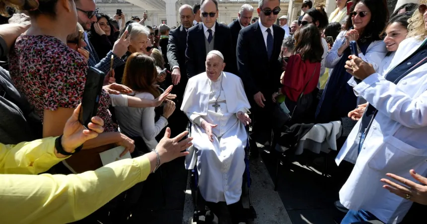 Con oxígeno y en silla de ruedas, el Papa Francisco reapareció por sorpresa. «Comparto la experiencia de la enfermedad», escribió.