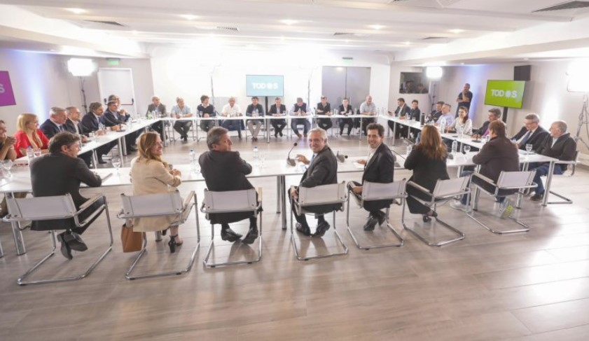 El presidente Alberto Fernández encabezó la Mesa Nacional del Frente de Todos en la que, ante representantes de todas las fuerzas que componen la coalición de Gobierno, discutieron la estrategia electoral camino a las presidenciales. Lo hizo junto al ministro de Economía y titular del Frente Renovador, Sergio Massa, y el diputado y dirigente de La Cámpora, Máximo Kirchner.