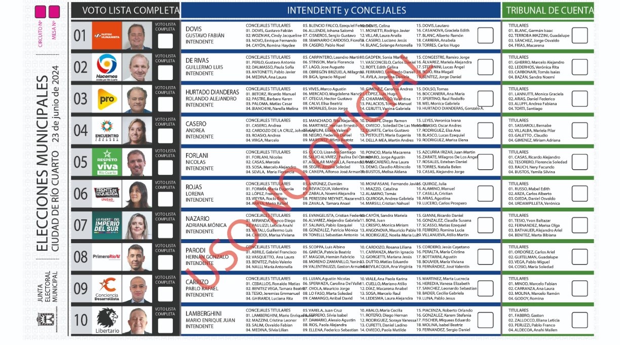 Este domingo 23 de junio, los vecinos y vecinas de Río Cuarto elegirán al próximo Intendente Municipal por el período 2024-2028. Además, votarán a los 19 hombres y mujeres que integrarán el Concejo Deliberante y a las cuatro personas que formarán parte del Tribunal de Cuentas por el mismo lapso que el futuro Jefe Comunal.