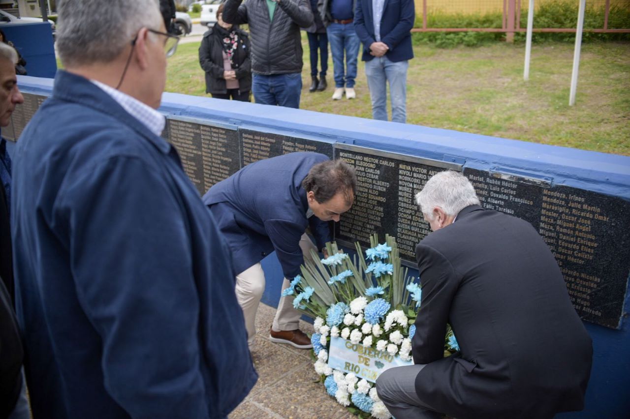 Además de los discursos alusivos en el museo, previamente en la Plaza “Héroes de Malvinas” se realizó el izamiento de bandera y las entregas florales en el placario en cual que figuran los 649 nombres de los caídos argentinos durante la guerra de Malvinas.