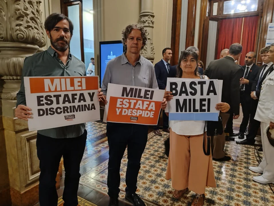 Por su parte, Castillo se sumó a los dichos de su compañero de bloque, reafirmó que dejaron esos mensajes “con la opinión de gran parte del pueblo trabajador”  y compartió la decisión de abandonar el recinto.