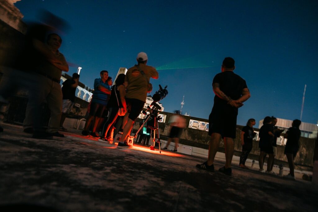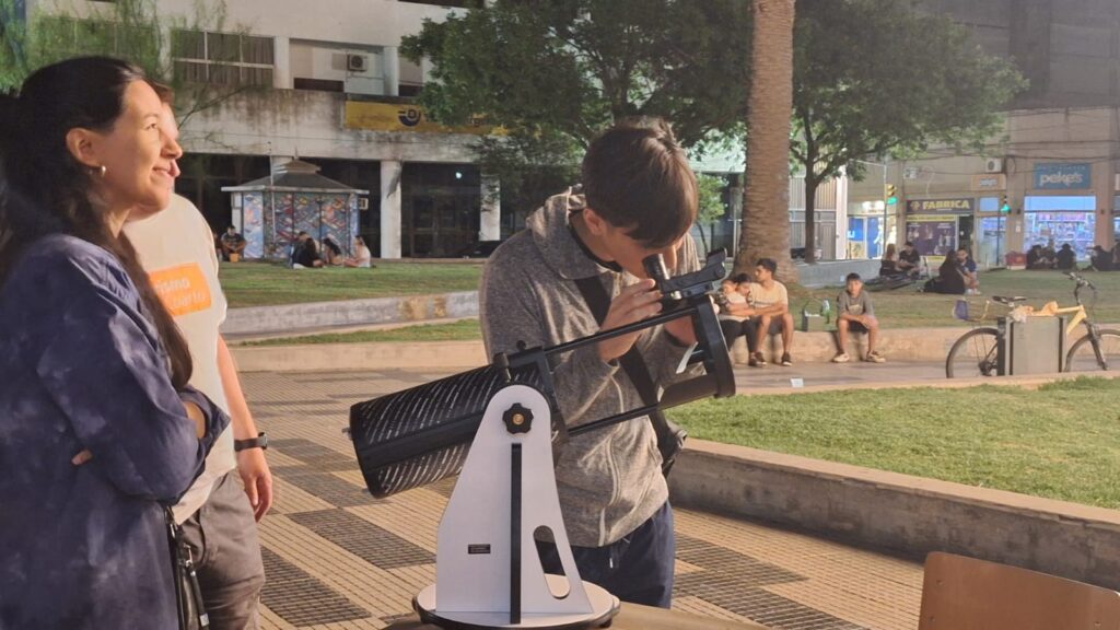 La actividad se llevó adelante de manera simultánea en dos espacios públicos estratégicos del sur de Córdoba. En la terraza del Palacio de Mojica, especialistas guiaron a los asistentes en un recorrido por las principales constelaciones visibles durante el verano, mientras que en la Plaza Olmos se instalaron telescopios para la observación astronómica.