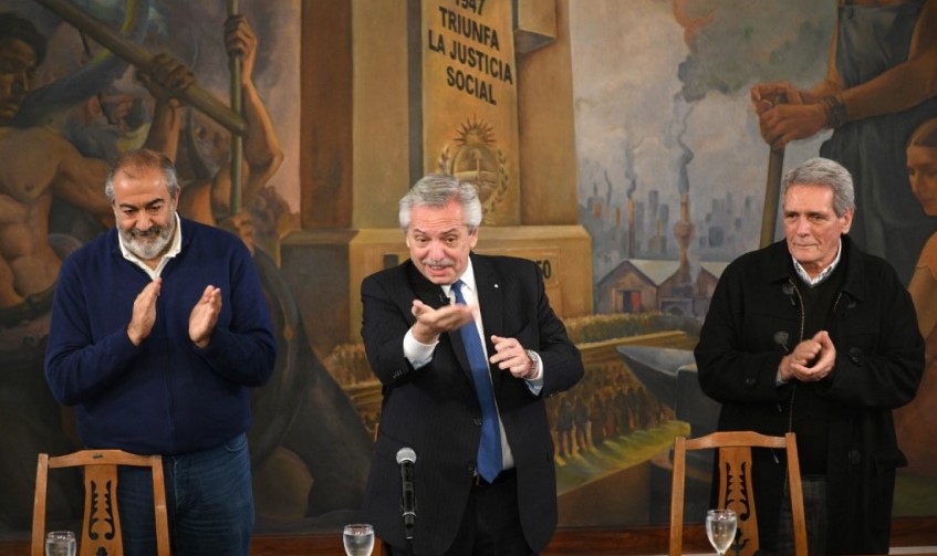 El jefe de Estado endureció su discurso de cara a la interna del Frente de Todos ante una tribuna integrada por los gobernadores Axel Kicillof (Buenos Aires), Jorge Capitanich (Chaco), Osvaldo Jaldo (Tucumán), Raúl Jalil (Catamarca) y Ricardo Quintela (La Rioja); y los secretarios generales de la CGT Héctor Daer y Carlos Acuña, sin la participación del tercero, Pablo Moyano.