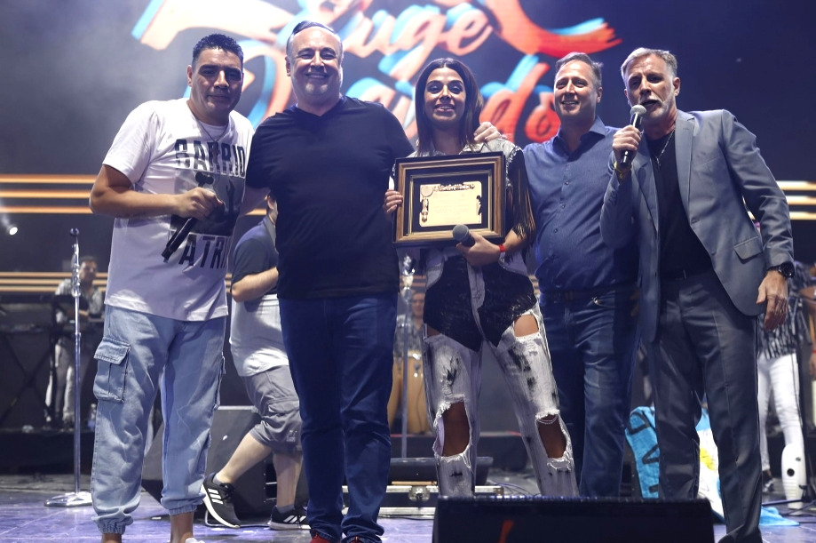 Momentos antes de finalizar el show que brindaron Euge Quevedo y La Banda de Carlitos, el intendente Eduardo Accastello junto al presidente del Ente Deporte y Turismo, Alejandro Mana, subieron al escenario e hicieron entrega de una placa en reconocimiento a la banda.