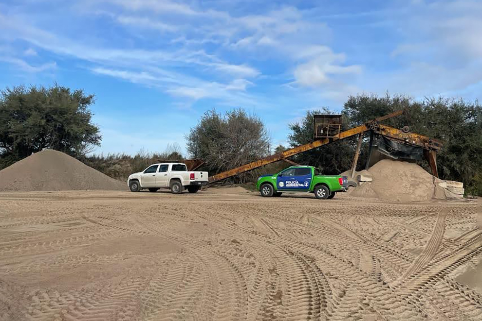 Una vez en el lugar, los agentes observaron material acopiado en un sector que no contaba con autorización, por lo que procedieron a instrumentar un cese preventivo y precautorio de las actividades de extracción de áridos.