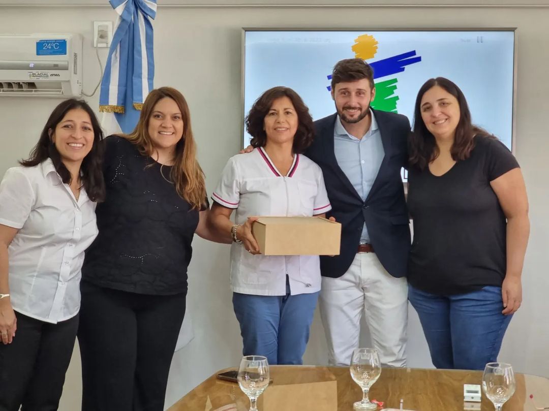 El intendente Franco Morra junto a la secretaria de Gobierno, la directora de Recursos Humanos , el responsable del Hospital de la Comunidad y delegados del Sindicato Municipal entregaron presentes en reconocimiento al personal municipal que cumplió 25 años de servicios en diversas áreas del estado local.