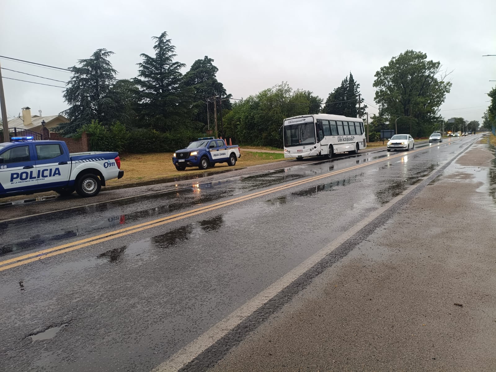 El vehículo de mayor porte es un ómnibus Mercedes Benz perteneciente a la empresa Transporte Las Acequias, que era conducido por un hombre de 43 años. En tanto, la motocicleta involucrada es una Honda XR 250, al mando de un hombre de 31 años.