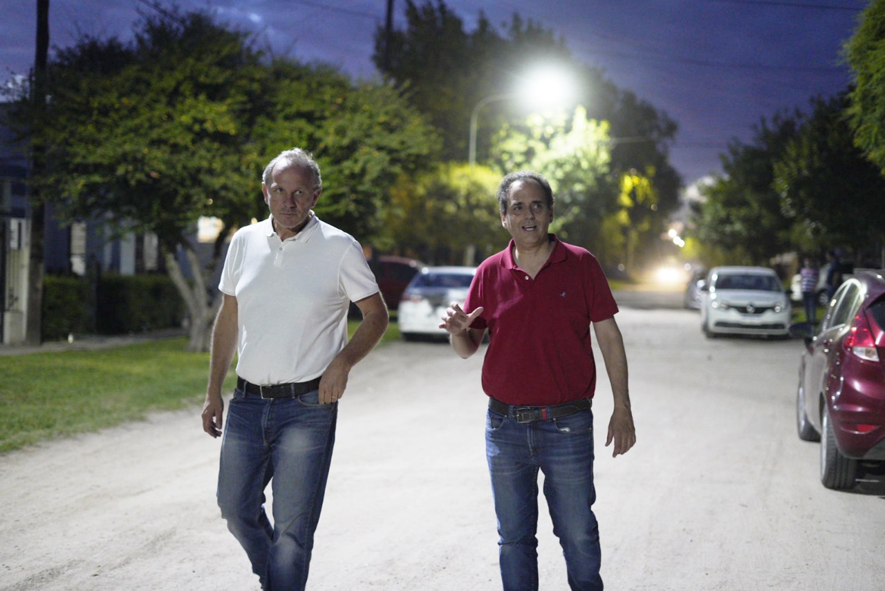 El Intendente Juan Manuel Llamosas y el Secretario de Gobierno y Participación Ciudadana Guillermo De Rivas recorrieron el barrio de Empleados Municipales, donde recientemente fue habilitada la obra de luminarias LED que se ejecutó en el sector de la Vecinal Las Quintas, con lo cual más del 90% de la ciudad ya cuenta con dicha tecnología.