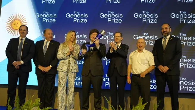 Durante su visita oficial a Israel, el presidente Javier Milei fue galardonado, este jueves, con el Premio Génesis, una condecoración entregada por el parlamento israelí, que suele recibir el nombre informal de «Nobel Judío«. La ceremonia tuvo lugar mientras el mandatario argentino continúa con su extensa gira por Asia y Europa.