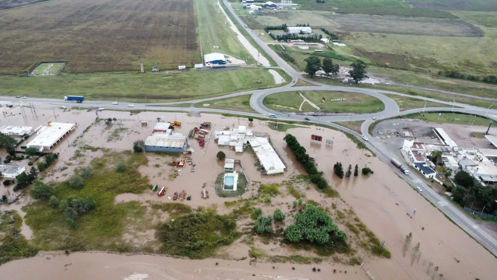 También una planta agropecuaria ubicada entre la rotonda de las Rutas 8 y 4 y el nuevo puente de ingreso a La Carlota tenía agua en sus instalaciones.