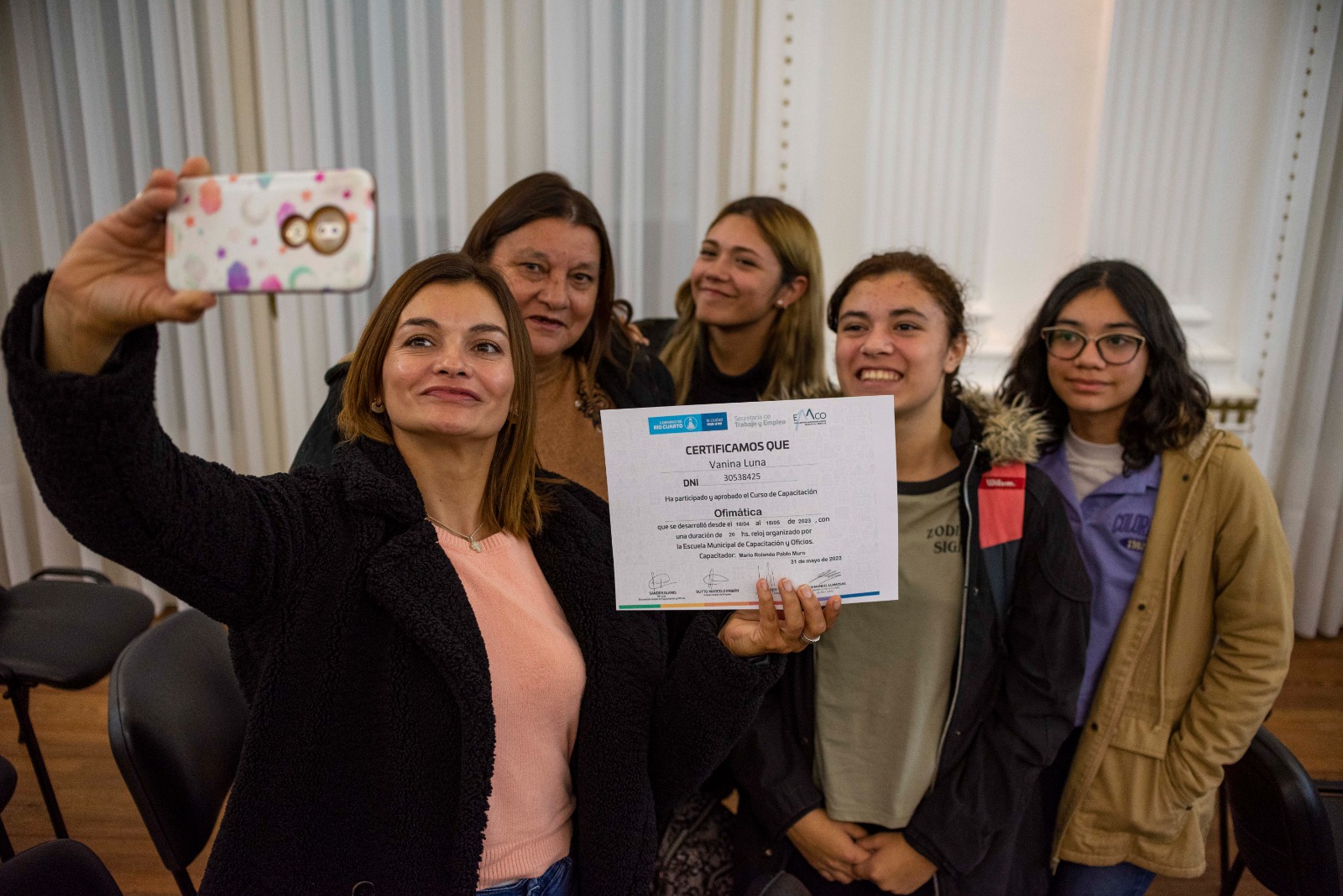 La Secretaría de Trabajo y Empleo de la Municipalidad de Río Cuarto hizo entrega de más de 120 certificados de cursos realizados por la EMCO (Escuela Municipal de Capacitación en Oficios) durante esta primera etapa del año.