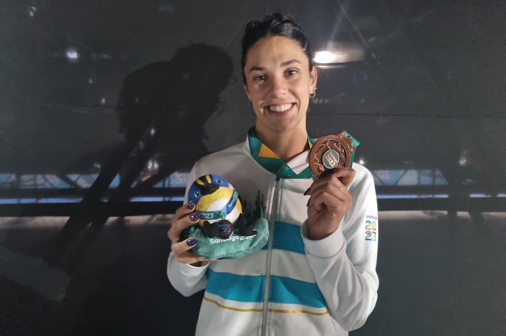 «Soñé con esta medalla. Estoy súper feliz», dijo la atleta riocuartense tras quedarse con el tercer lugar en 100 metros pecho, en los Juegos Panamericanos de Santiago.