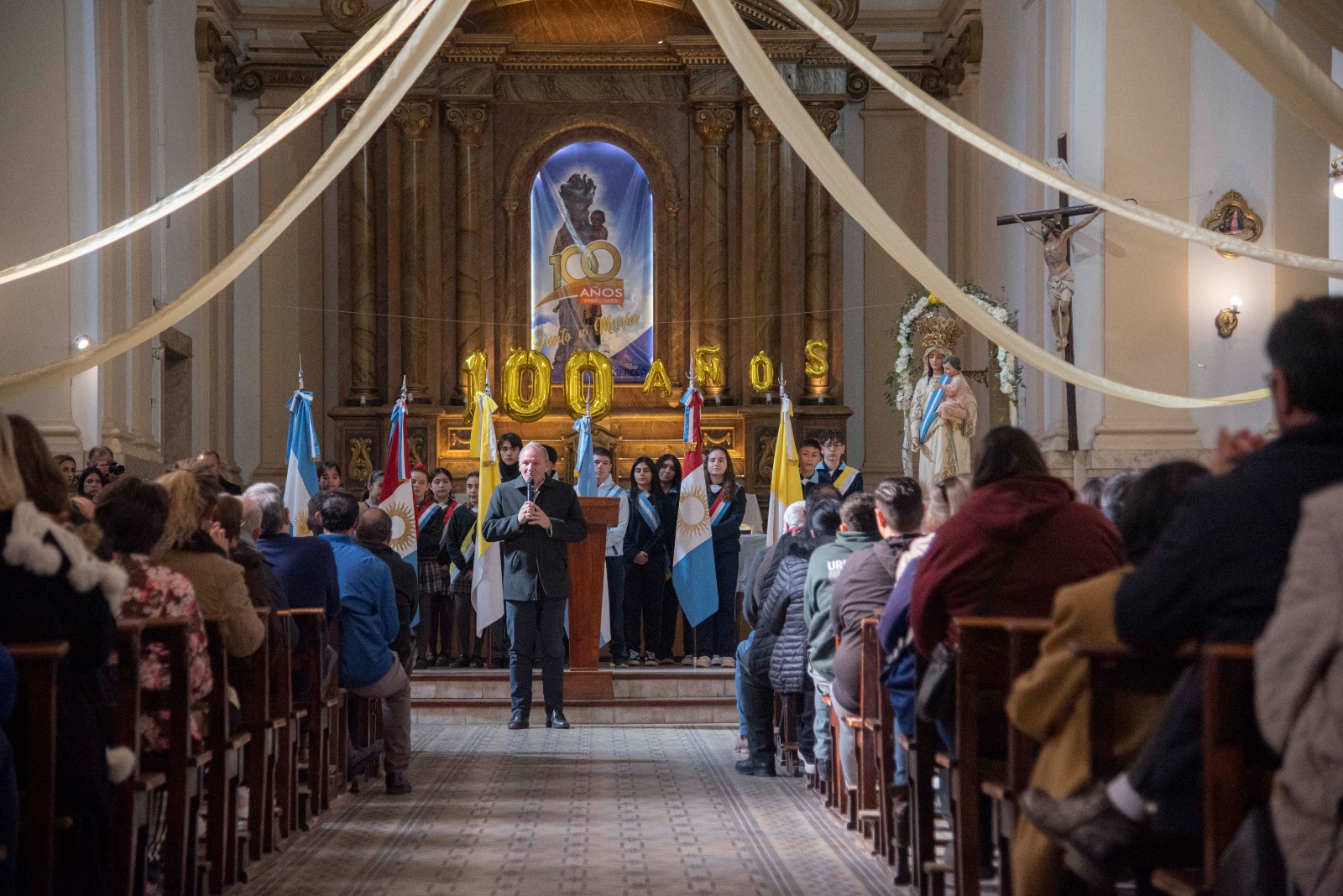 El intendente Guillermo De Rivas participó del acto y expresó: “Una enorme satisfacción acompañar al Padre Carlos, al obispo Adolfo y a toda esta comunidad que celebra 100 años de vida, de historia y de fe. La parroquia ha sido no solo un lugar de evangelización, sino también un espacio de contención y un símbolo de unidad barrial. Es un verdadero emblema del barrio Alberdi y parte esencial de su identidad.”