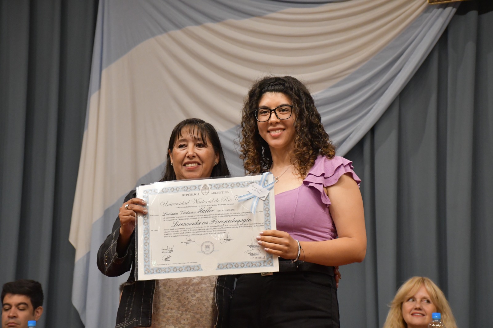 La toma de juramento profesional estuvo a cargo de la rectora de la UNRC, Marisa Rovera. Una vez más, hubo entre los profesionales quienes se recibieron gracias al proyecto Potenciar la Graduación, que con dos convocatorias por año se orienta a quienes tienen pendiente 30 por ciento o menos del plan para completar sus estudios.