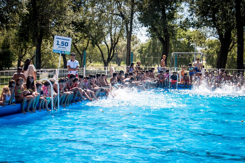 Desde las 9 de la mañana, hubo actividades de pileta, donde los niños acompañados por los profesores aprenden a nadar y participan en juegos deportivos y recreativos. Además, compartieron desayuno y almuerzo.