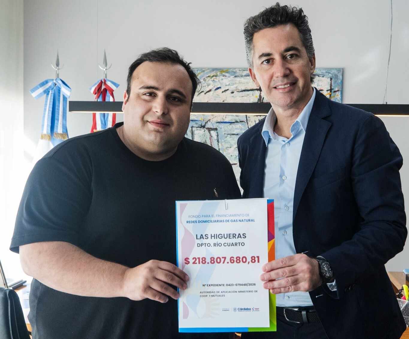 El intendente de Las Higueras, Gian Lucchesi, confirmó que el municipio avanzó junto al ministro de Gobierno de Córdoba, Manuel Calvo, en la firma de un crédito destinado a continuar la obra de gas natural en los barrios Aguaribay y Portal del Sol. La iniciativa busca ampliar el acceso a un servicio básico en la localidad del sur de Córdoba y mejorar la calidad de vida de los vecinos.