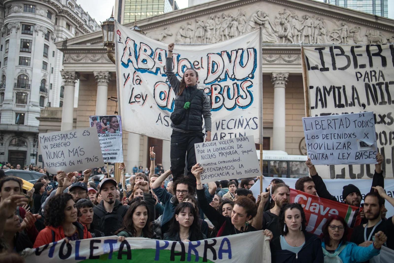 Durante el acto no hubo oradores ni se leyó un documento, y las consignas eran “libertad a las y los detenidos por la ley Bases; cierre de todas las causas por luchar y cese de las persecuciones”.