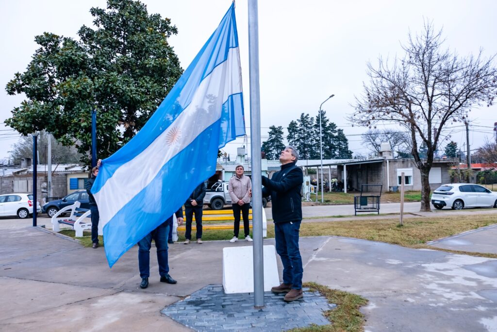 Con la presencia de representantes de instituciones locales, en el corazón del Barrio Norte, se entonaron con orgullo, las estrofas de Aurora, del Himno Nacional Argentino y de la Marcha a Mi Bandera.