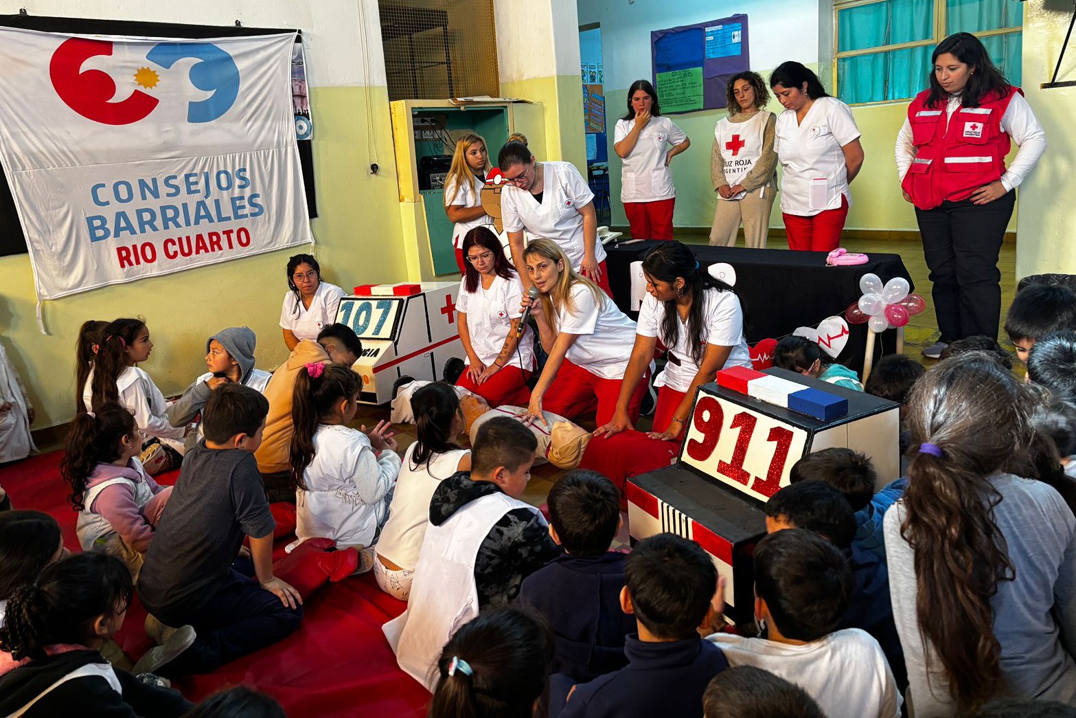 Unos 220 alumnos de nivel primario del Centro Educativo Nicolás Avellaneda, de Río Cuarto, participaron de una jornada de prevención y promoción de la salud coordinada desde los Consejos Barriales en conjunto con la Filial Río Cuarto de la Cruz Roja Argentina.