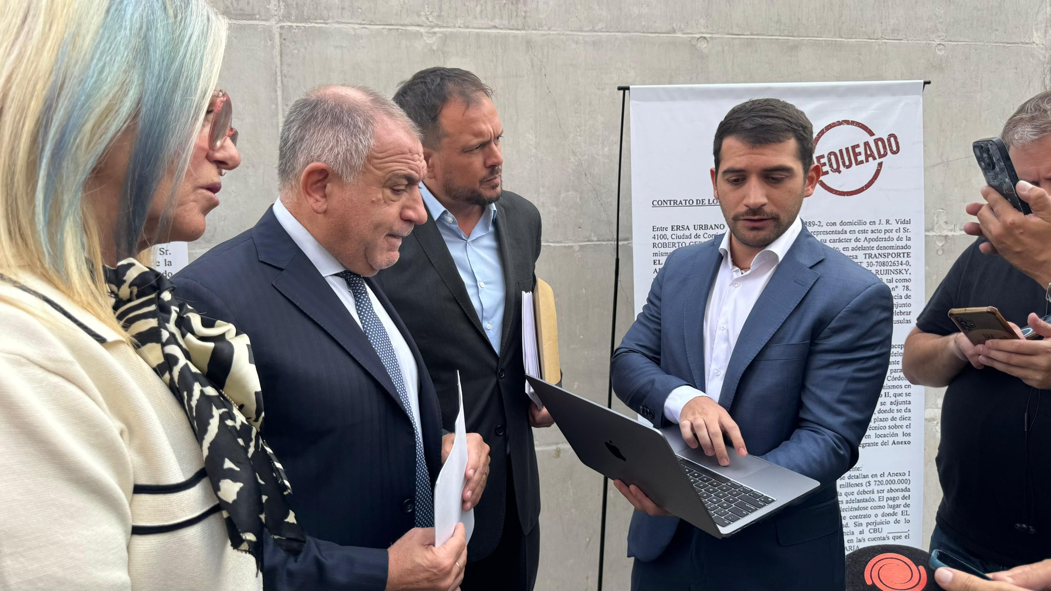 La denuncia fue realizada en Tribunales junto a los concejales Martín Juez, Graciela Villata y José María Romero, y apunta a un contrato firmado en marzo de 2024 para el alquiler de 350 unidades.